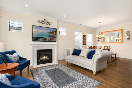 Light and bright great room with large picture windows and gas fireplace opens to formal dining room. White kitchen features new stainless refrigerator & dishwasher & eat-in area.